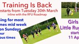 Training Restarts tonight Tuesday 30th March and on Sundays.  For the Girls and Little Ruggers it's Sunday 11 April. It will be exciting to be back at the Stump, see … view