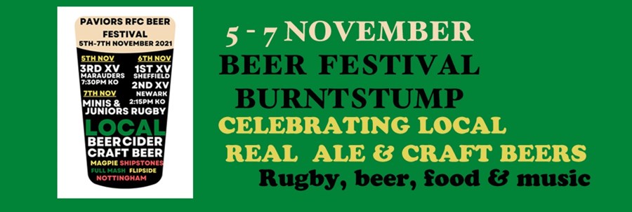 Paviors Beer Festival and Friday night rugby starts tonight. A change of opposition for the 3rds, who will now play South Notts Barbarians this evening.