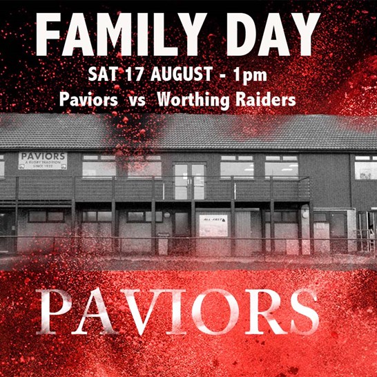 PAVIORS v WORTHING RAIDERS SATURDAY 17th AUGUST FROM 1.00pm