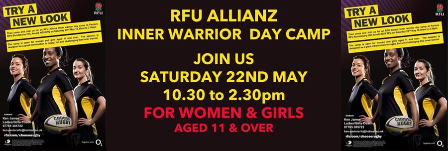 We are holding an Inner Warrior Training Camp on Saturday 22 May 10.30 to 2.30pm at Burnstump for women and girls aged 11 and over. The session is designed as a great introduction to rugby for those that have never played, currently playing or for those who want to get back playing after some time away.