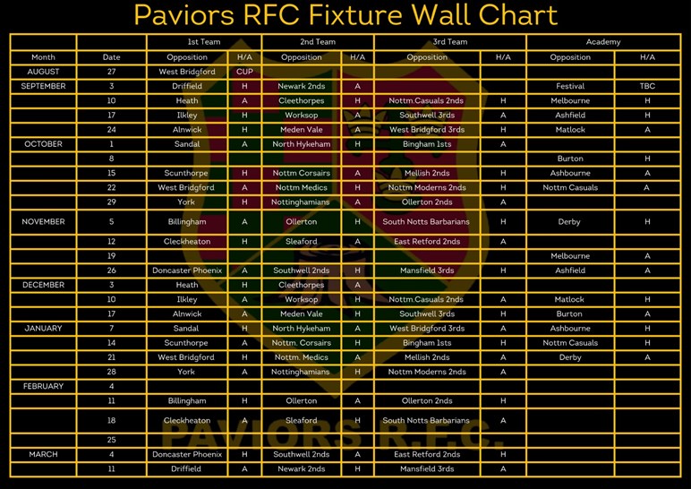 Senior Fixtures for our Centenary Year Season 2022/23. To keep you up to date with what matches are happening when, the Wall Chart can be downloaded so you can have your very own copy.
