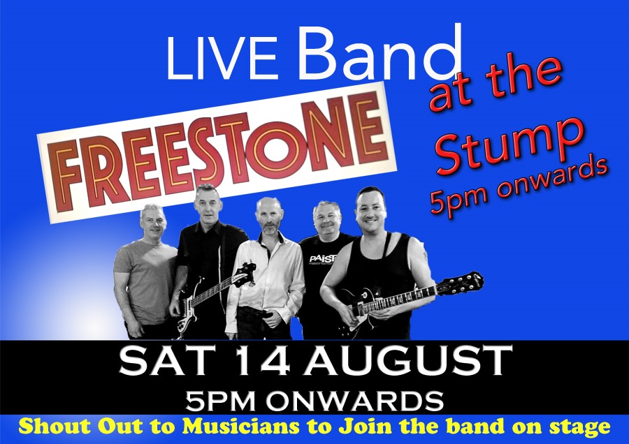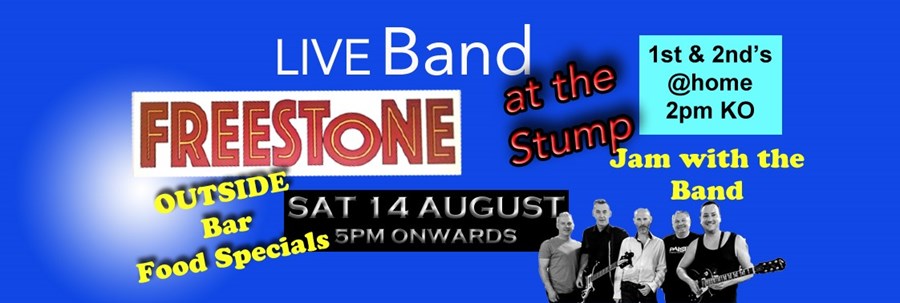 The Board wanted a Thank You Event for our membership to acknowledge your support over the last 18 months. This has resulted with the band Freestone coming to perform live music at the Stump on Saturday 14 August. The gates open at 5pm with Freestone's first performance at c. 6.30pm and then followed by performances throughout the evening. The 1st and 2nd teams have Pre-Season friendlies at home so you might already be at the Stump, both matches kick-off at 2pm if you want to make it a whole afternoon and evening of it.