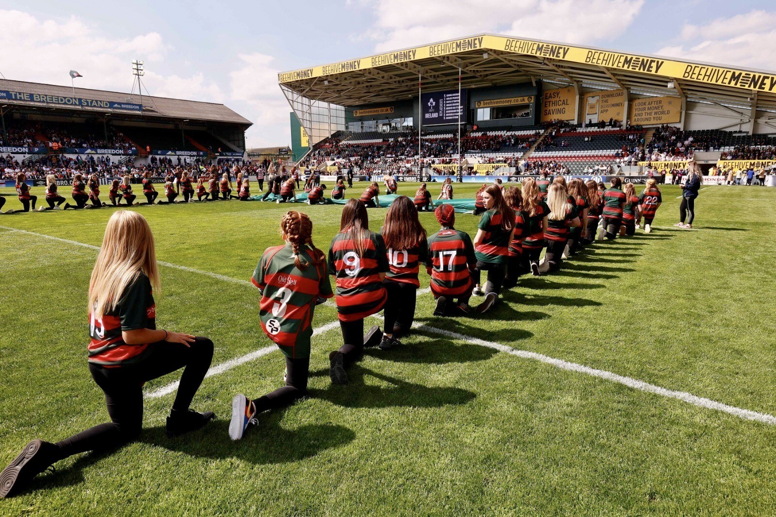 From Burntstump to Welford Road, what a fabulous day out - England v Ireland 6 Nations Flag Bearers - the Girls teams Under 13s, Under 15s and Under 18s (with a representative from our Ladies team too), @paviorsrfcgirls @paviorsrfc for the @englandrufgby Red Roses match v @irishrugby Women in the @womenssixnations, the teams did an amazing job bearing the Irish flag for both the anthems.