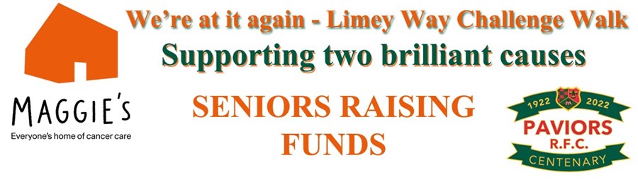 1st teamer George Billam and cohorts are tackling the Limey Way Challenge Walk in the White Peak to raise funds for two brilliant causes, the cancer charity Maggies and Paviors RFC Legacy Fund. The Walk is 40 miles and usually completed in 24 hours, the group have decided to up their pace and complete the hike in 16 hours.