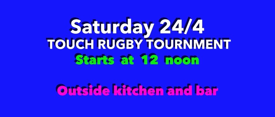This Saturday, 24 April at 12 noon, on the 1st team pitch we will once again have a Touch Rugby Tournament. Open to men, women, girls and boys (under 14 and upwards), novices welcome as are new and returning players interested in having a run out and an afternoon of enjoyment and exercise.