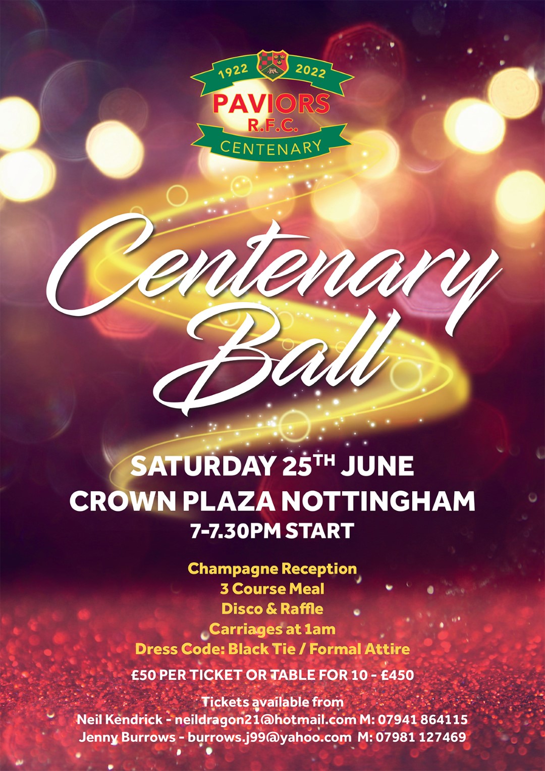 UPCOMING EVENT - PAVIORS CENTENARY BALL 25 JUNE