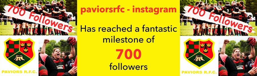 Paviors rfc has had a phenomenal response to it's Instagram page, which has only been up and running for a couple of months. We now have 700 followers seeing our images online worldwide.